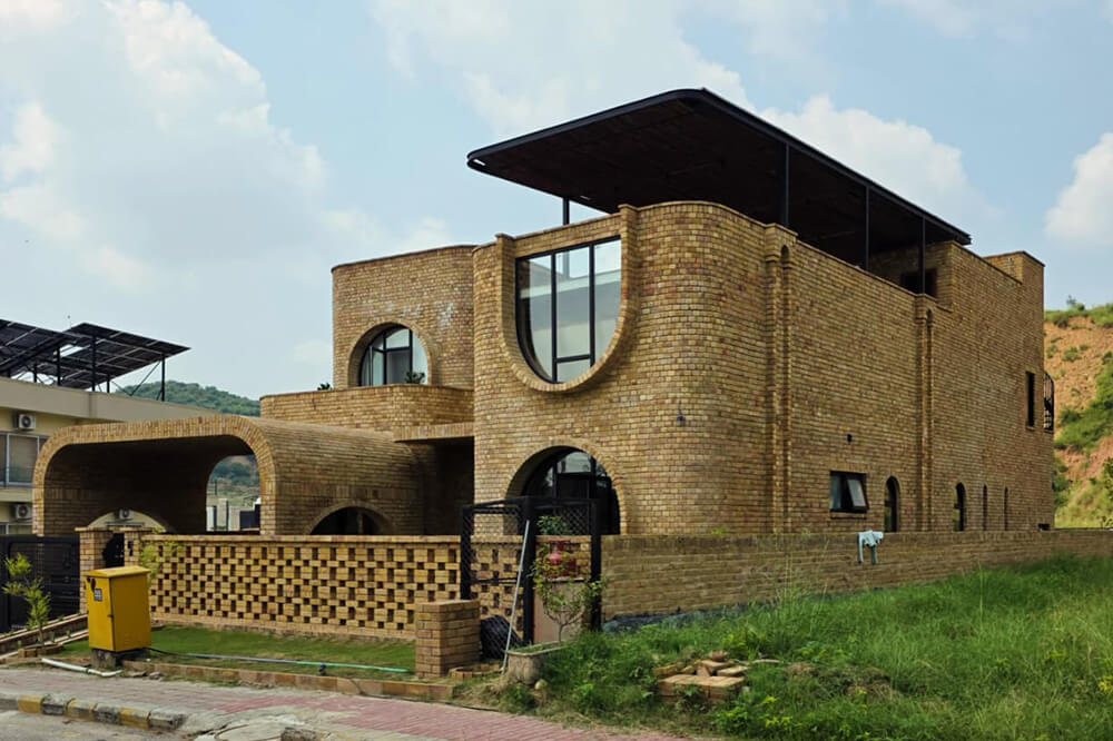 Built with fair-faced brick as a structural element, this 1 Kanal house with a covered area of 5000 sft beautifully blends traditional charm with modern design, creating a warm and inviting atmosphere.